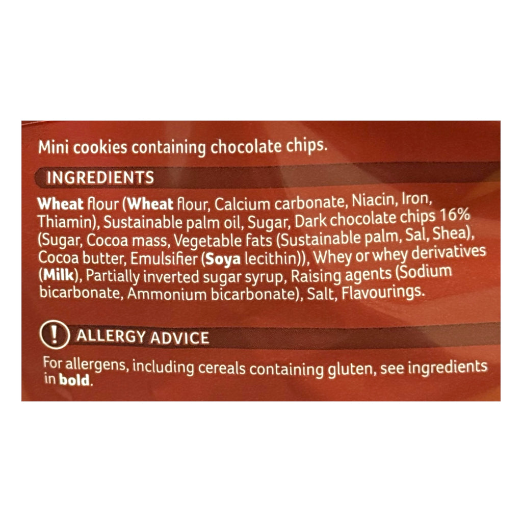 Six mini Bags mini chocolate flavour cookies containing chocolate chips